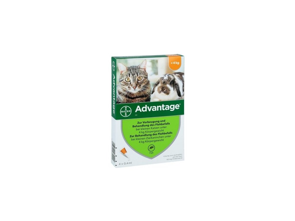 Advantage 40 mg roztok pro nakapání na kůži – spot-on pro malé kočky a králíky (≤ 4 kg)
