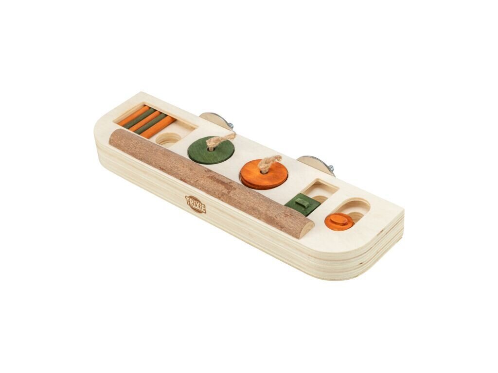 Aktivity hrací tác na pamlsky pro ptáky, 25 x 4 x 9 cm, dřevo