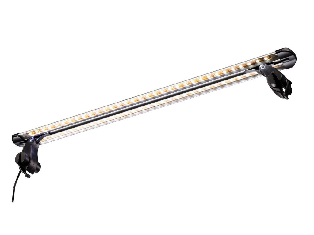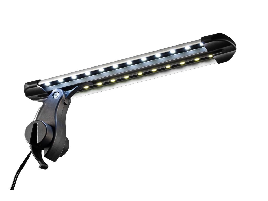 Elegantní LED osvětlení k uchycení na stěnu akvária. Pomocí univerzálního kloubového držáku jej můžete nasadit na různé síly skla a regulovat úhel dopadu světelných paprsků. Voděodolné provedení umožnuje osvětlení umístit přímo nad vodní hladinu. bezpečné voděodolné provedení optimání spektrum světla pro sladkovodní akvária univerzální držák pro 3 až 10 mm sklo až 90% úspora elektrické energie jednoduchá montáž