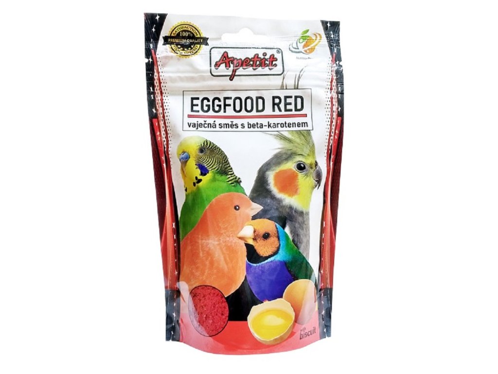 Doplňkové vaječné krmivo pro exotické ptactvo s beta - karotenem.