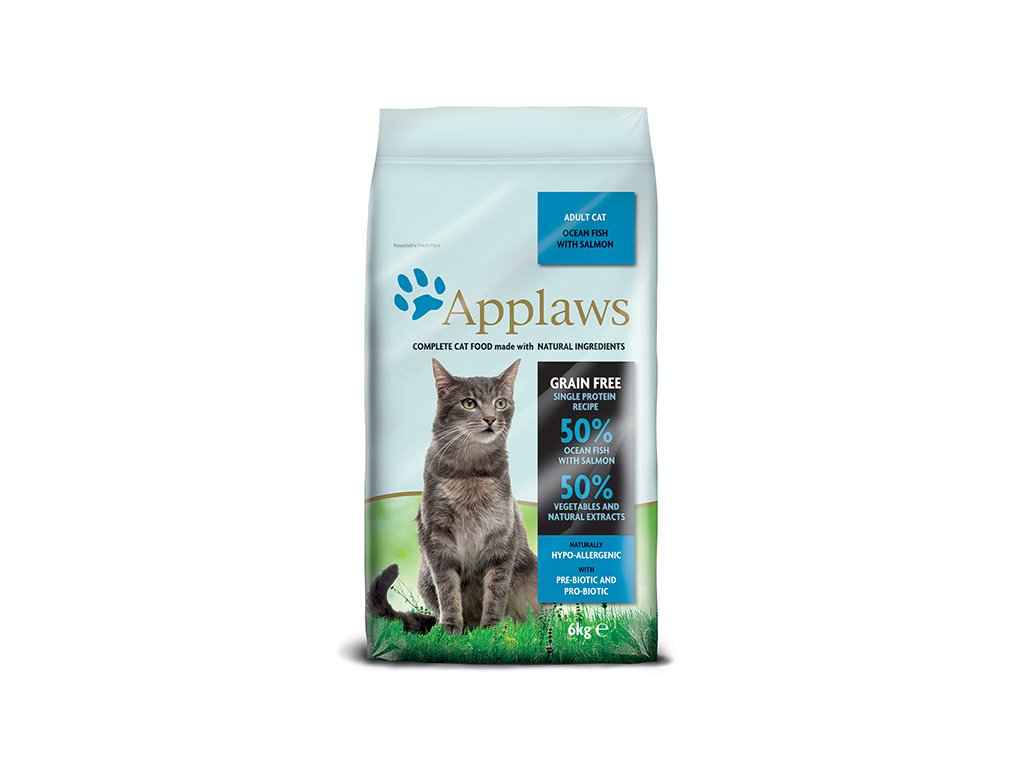 Applaws Cat Ocean Fish & Salmon je kompletní krmivo pro kočky s 50% obsahem mořských ryb a lososa, zcela bez obilovin, konzervantů, dochucovadel a barviv. Je přirozeně hypoalergenní, vhodné pro single protein dietu a kočky s alergií na kuře, má nízký obsah sacharidů. Obsahuje prvotřídní maso, zeleninu a bylinkové extrakty.