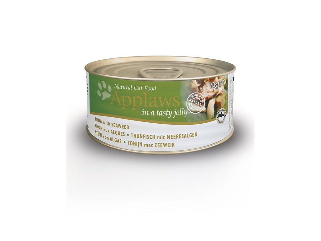 Applaws konzerva Cat JELLY 70g tuňák a mořské řasy je plná celých kousků tuňáka s mořskými řasami v jemném želé. Mořské řasy obsahují 14 krát více vápníku než mléko a 20 krát více minerálů než zelenina. Obsahují kvalitní bílkoviny, spoustu železa, jódu, ale i zinek, hořčík, chrom nebo sodík a důležité vitamíny, hlavně A a vitamíny skupiny B. Dopřejte svým kočičkám vitamínovo-minerální bombu!Applaws je lehce stravitelné, nutričně vysoce hodnotné, přirozeně hypoalergenní a hlavně velmi chutné krmení! 100% přírodní krmivo, které chutná i vybíravým a mlsným kočkám. Vaše kočky si Applaws zamilují!