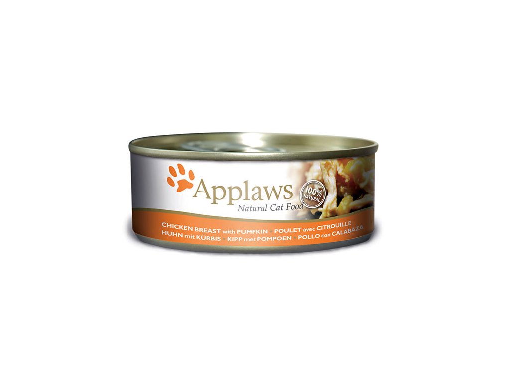 Applaws konzerva Cat 156g KUŘECÍ PRSA A DÝNĚ je přírodní doplňkové krmivo pro kočky. Dýně je skvělým zdrojem vlákniny a podporuje zdravé trávení. 100 % přírodní krmivo bez umělých konzervačních látek, barviv nebo dochucovadel.Applaws konzervy pro kočky obsahují pouze z kvalitní a přírodní suroviny. Použité kuřecí maso pochází z chovů, v nichž jsou kuřata krmena přirozeně a nejsou do krmiva přidávány hormony. Ryby, jejichž maso je použito v krmivu, byly loveny ve volné přírodě.