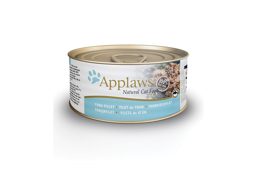 Applaws konzerva Cat 70g TUŇÁK obsahuje celé kousky tuňákových filetů v rybím vývaru. Čistá přírodní chuť bez dochucovadel, soli, barviv a konzervantů - 100 % přírodní krmivo, kterému žádná kočka neodolá!!! Pokud miluje ryby :-).Applaws konzervy pro kočky obsahují pouze z kvalitní a přírodní suroviny. Použité kuřecí maso pochází z chovů, v nichž jsou kuřata krmena přirozeně a nejsou do krmiva přidávány hormony. Ryby, jejichž maso je použito v krmivu, byly loveny ve volné přírodě.