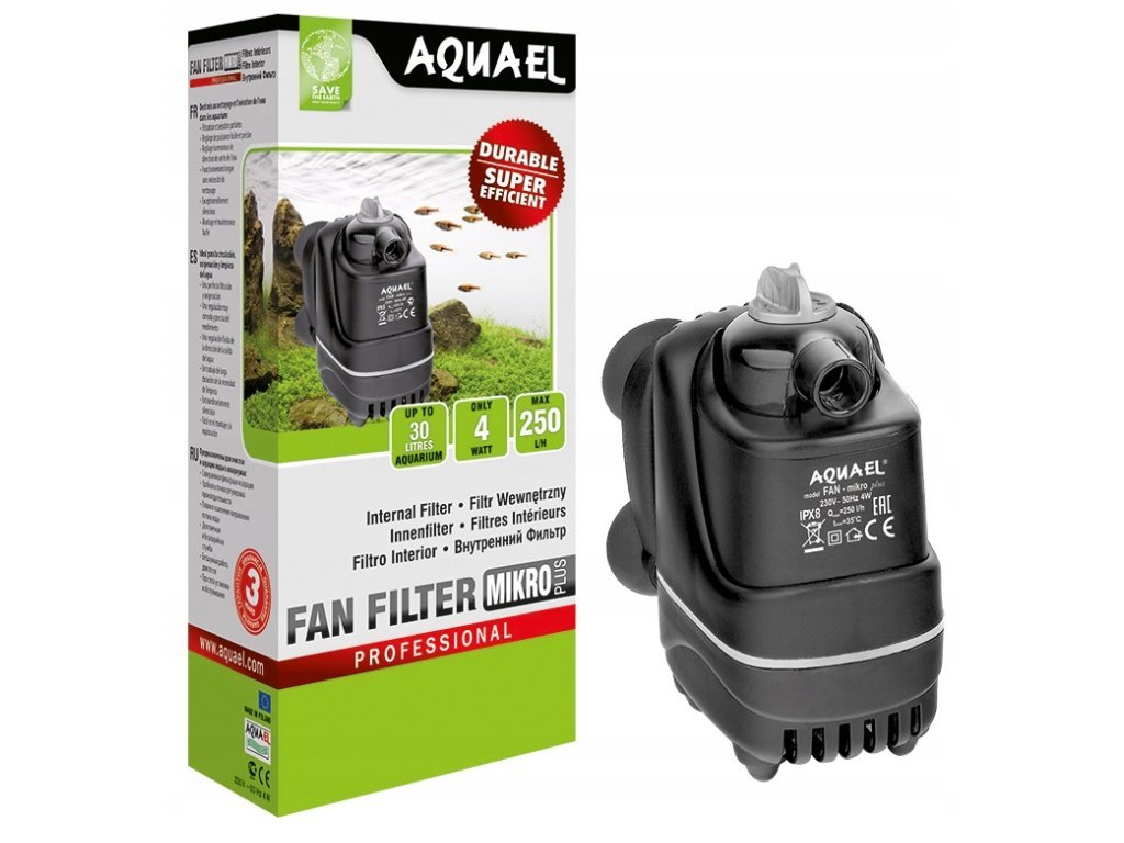 AQUAEL Fan Filter Mikro Plus je díky minimálním rozměrům, velkému výkonu, nekomplikované konstrukci vhodný pro pro začínající akvaristy.