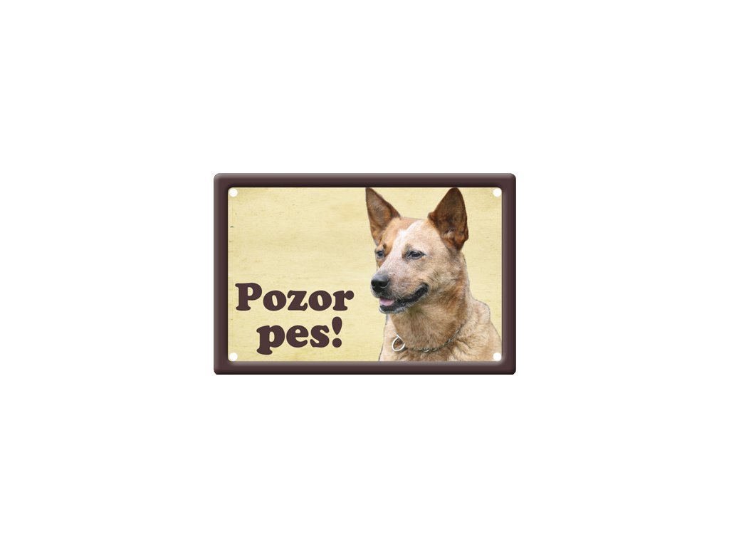 Plechová psí cedulka pro venkovní i vnitřní použití v rozměru 150x100mm, v rozích 4 díry pro uchycení, prolisovaný zdobný okraj tabulky, potištěný plech.