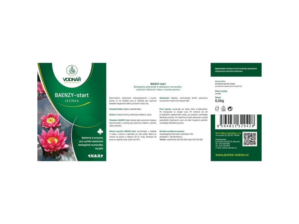 Použití: BAENZY - Start rozmíchejte v nádobě s vodou z jezírka a aplikujte v celé ploše.