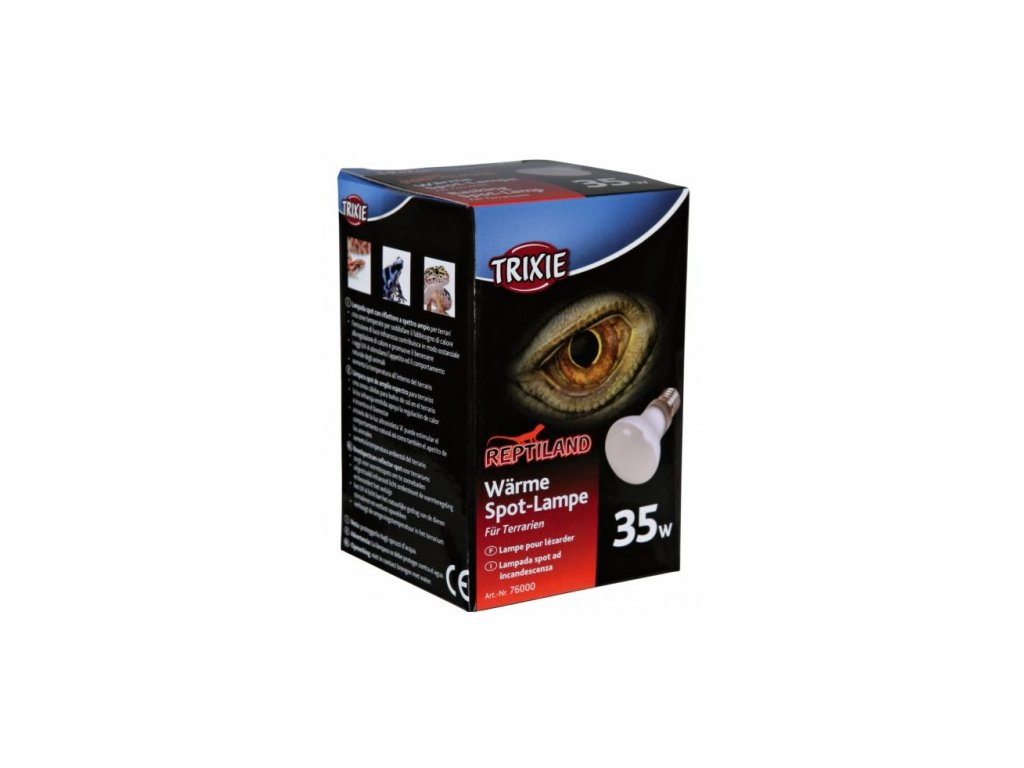 Basking Spot-Light 100W je širokospektré reflektorové bodové světlo pro terária - vytváří teplou opalovací oblast - vydávané infračervené světlo podporuje termoregulaci a napomáhá dobrému zdraví - UV-A může aktivovat přírodní chování zvířat a stimuluje jejich chuť k jídlu - Zajišťuje teplotu v terarijním prostředí - Chraňte před pošplícháním vodou - Nepoužívejte jako domácí osvětlení! Používat pouze pro zvířata! Výrobce: Trixie GmbH, SRN