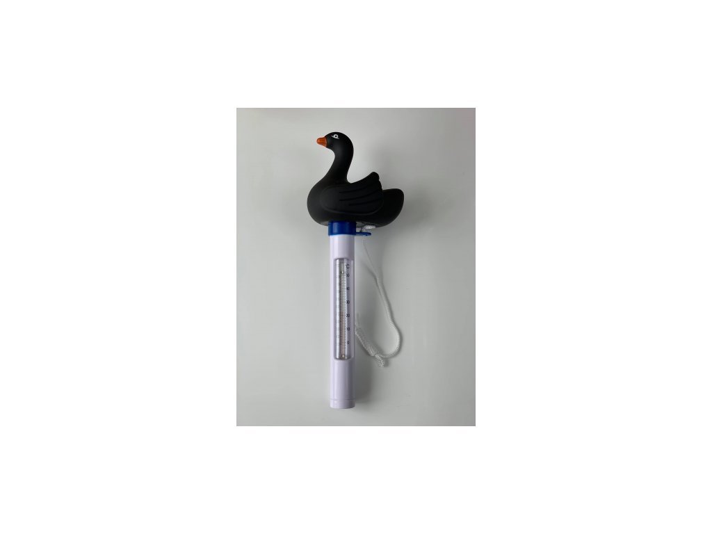 Teploměr se zvířátkem černá labuť je bazénové teploměr měřící teplotu v rozsahu 0 až 50 stupňů Celsia. Dekorativní provedení s černou labutí plovoucím nad hladinou. Teploměr je možné uchytit pomocí malého lanka.