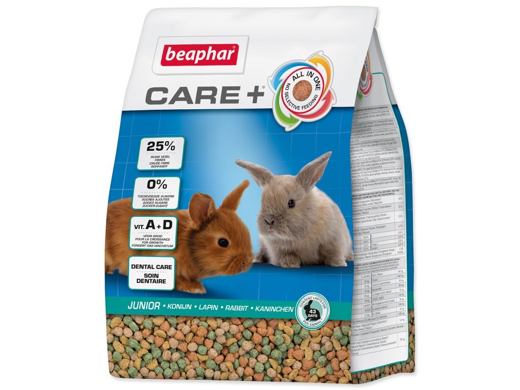 Kompletní krmivo pro mladé králíky. Care+ Jinior Rabbit je velice chutné superprémiové krmivo, které bylo vyvinuto ve spolupráci s chovateli, veterináři a odborníky na výživu. Je to 100% extrudované krmivo, tedy každá peleta má stejné složení (vše v jednom). Díky tomu máte jistotu že Váš králík má vše co potřebuje, protože je eliminován možnost vybírání částí potravy.