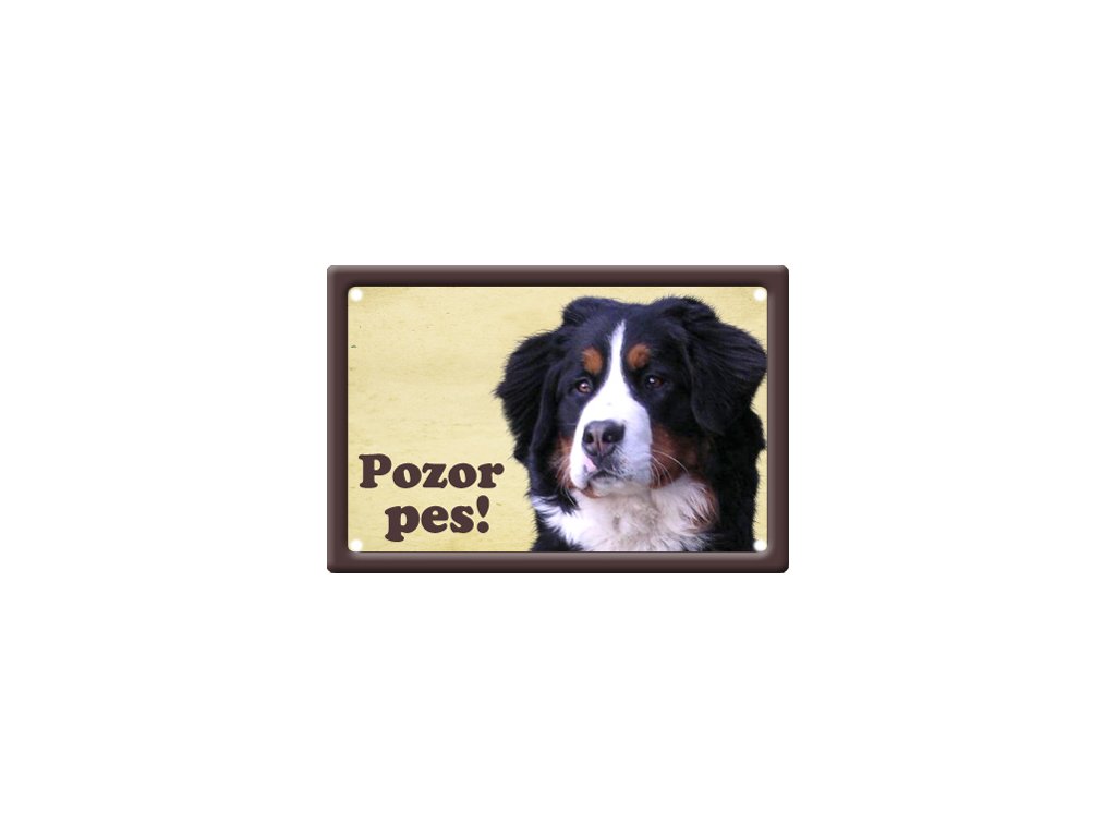Plechová psí cedulka pro venkovní i vnitřní použití v rozměru 150x100mm, v rozích 4 díry pro uchycení, prolisovaný zdobný okraj tabulky, potištěný plech.