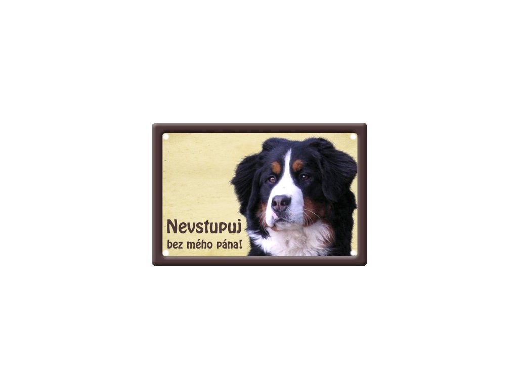Plechová psí cedulka pro venkovní i vnitřní použití v rozměru 150x100mm, v rozích 4 díry pro uchycení, prolisovaný zdobný okraj tabulky, potištěný plech.