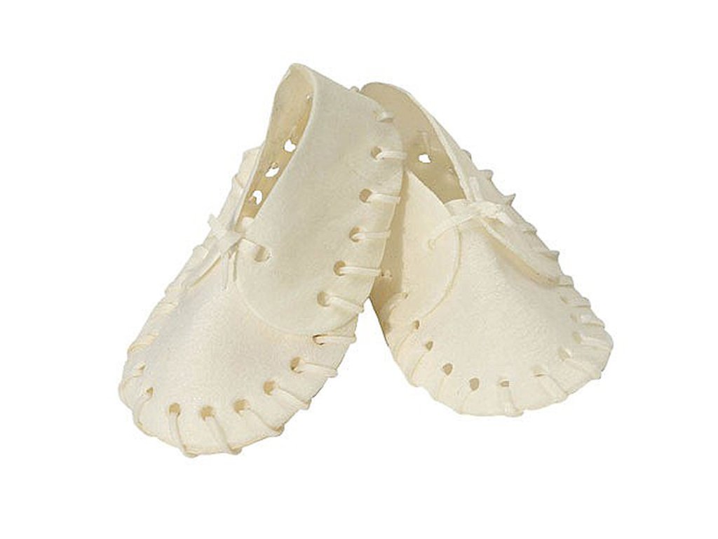 Žvýkací pochoutka z bůvolí kůže ve tvaru sandálku.