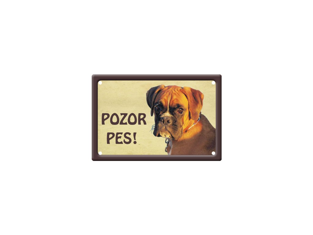 Plechová psí cedulka pro venkovní i vnitřní použití v rozměru 150x100mm, v rozích 4 díry pro uchycení, prolisovaný zdobný okraj tabulky, potištěný plech.