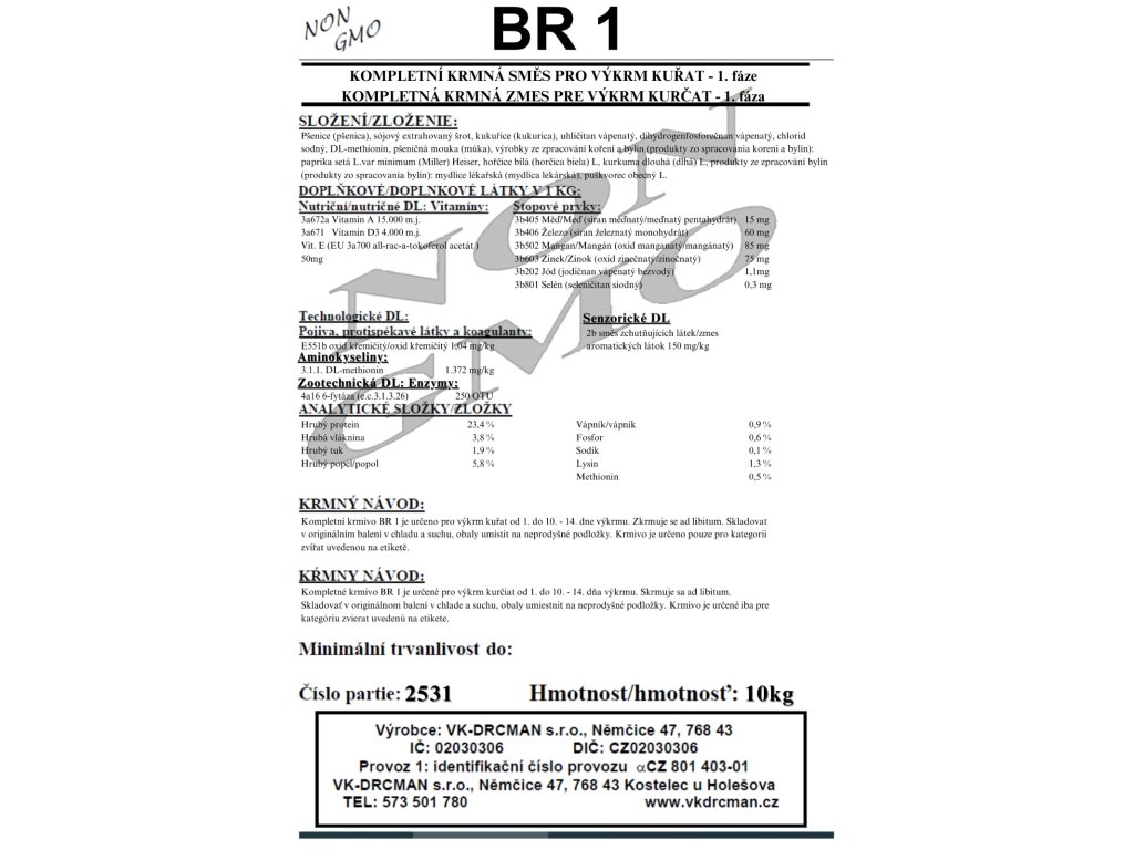 - Živinové parametry a skladba z kvalitních surovin zajišťuje optimální vývin kuřete od prvních dnů života
