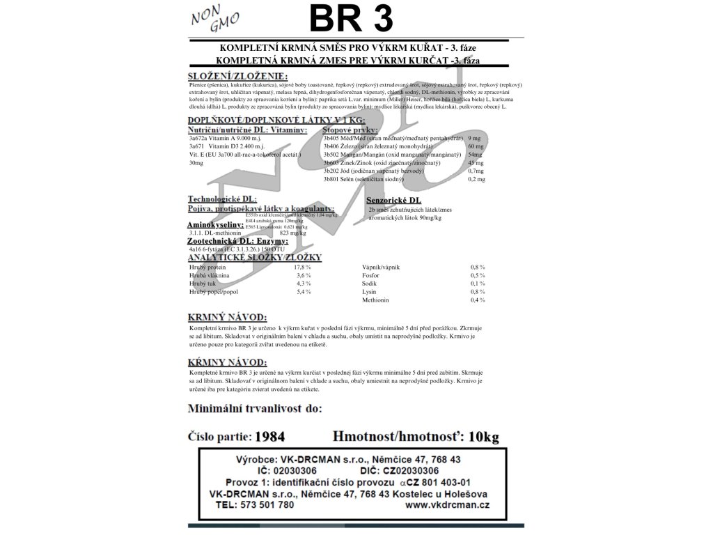 Kompletní krmivo pro závěrečnou fázi výkrmu brojlerů.
