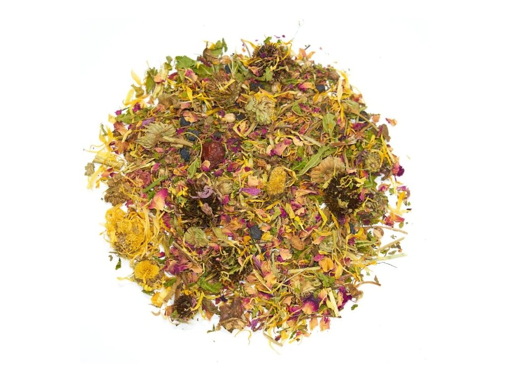 Složení: Rybíz, bříza, růže, chrpa, ibišek, fenykl, majoránka, meduňka, slunečnice.