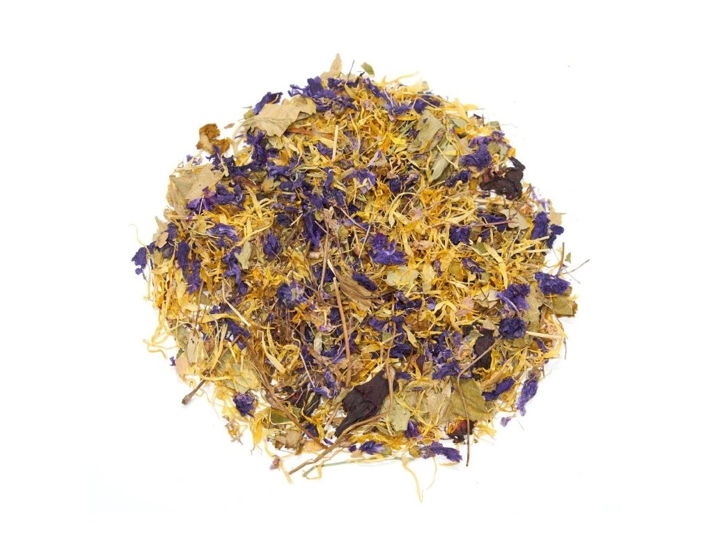 Složení: Měsíček, sléz, ibišek, mateřídouška, jahodník, čekanka, divizna, vřes, ostropestřec.
