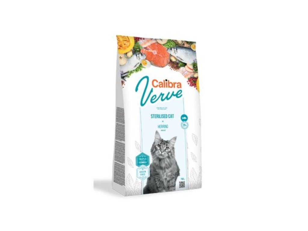 Calibra Cat Verve Sterilised Herring je kompletní krmivo bez obilovin s vysokým obsahem čerstvého rybího masa. Receptura je určená pro sterilizované a kastrované kočky.