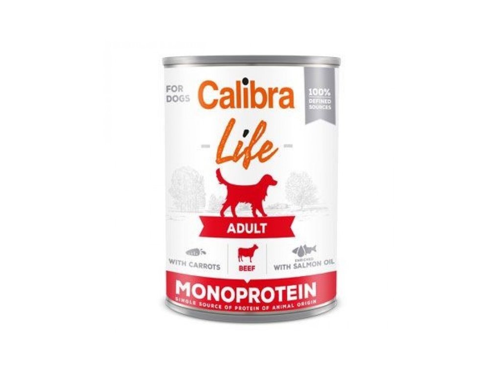 Calibra Dog Life Adult Beef with Carrots – receptura konzervy s hovězím a mrkví je kompletním krmivem, které je určené dospělým psům.