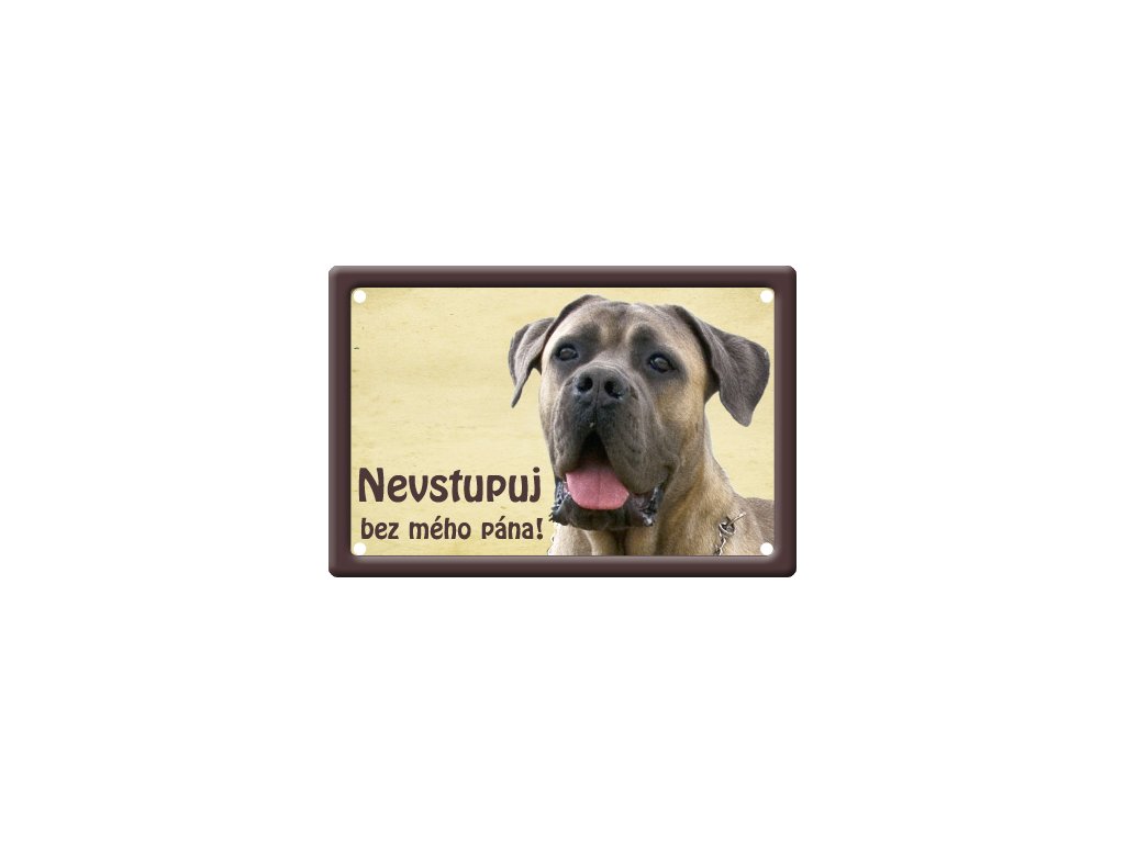 Plechová psí cedulka pro venkovní i vnitřní použití v rozměru 150x100mm, v rozích 4 díry pro uchycení, prolisovaný zdobný okraj tabulky, potištěný plech.
