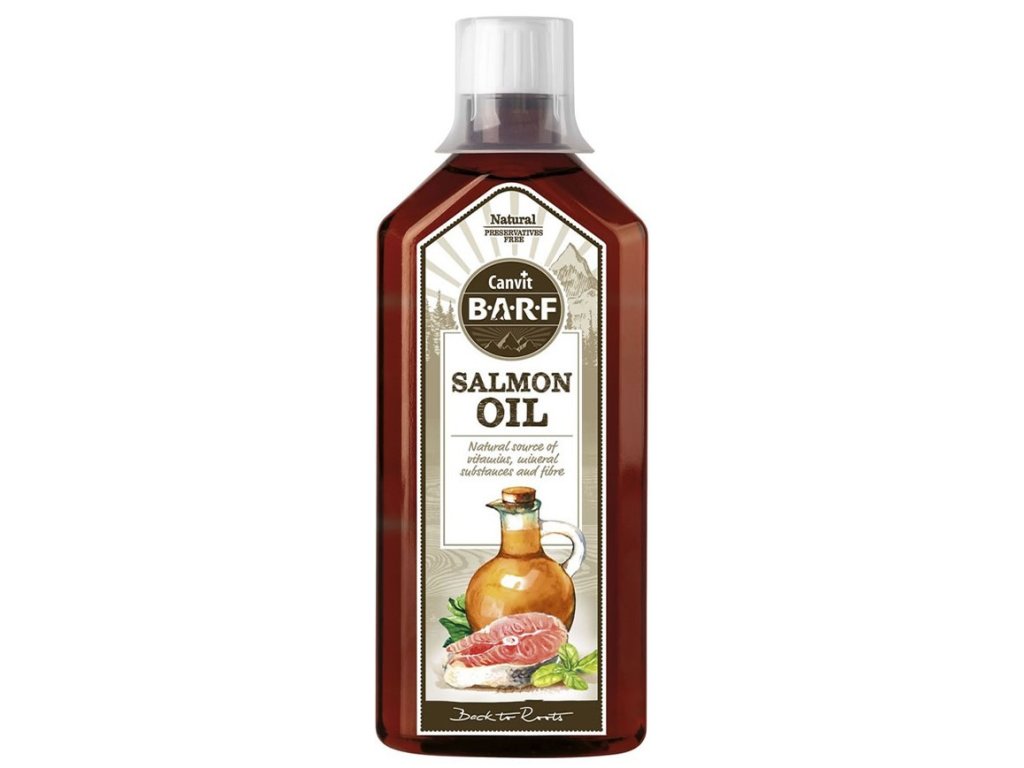 Canvit BARF 100% za studena lisovaný lososový olej je zcela přírodní doplněk stravy z Norského lososa pro psy i kočky: