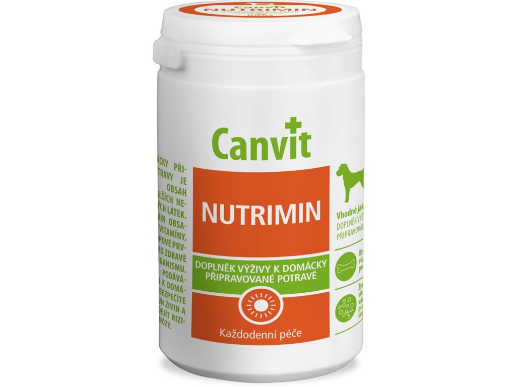 Canvit Nutrimin je komplex 14ti důležitých vitamínů, mikroprvků a L-karnitinu s vysokou biologickou dostupností pro vyvážení krmné dávky u doma připravované stravy (vařená strava, syrová strava BARF, konzervy a jiná nekompletní krmiva). Dále slouží jako léčba pro psy s diagnostikovanou hypovitaminózou.