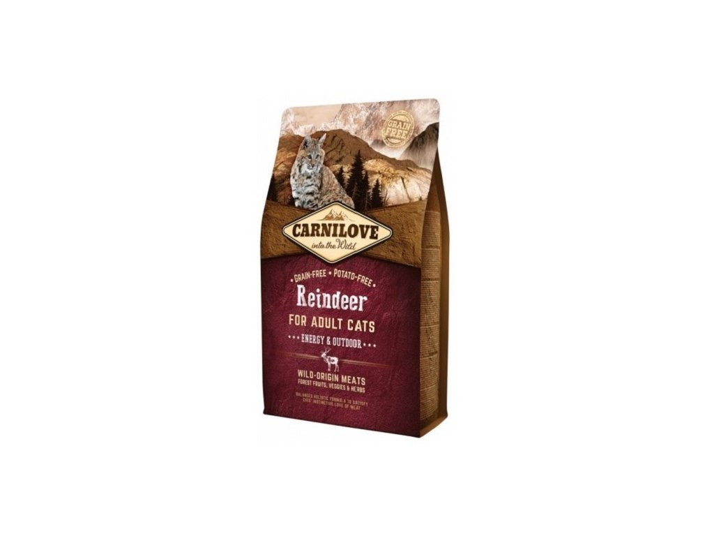 Carnilove Reindeer for Adult Cats je navržen s respektem k přirozené skladbě potravy koček. Sobí maso je vzhledem k vysokému obsahu přírodních antioxidantů, nenasycených tuku a omega-3 mastných kyselin ideální pro doplnění energie po každém kočičím dobrodružství. V kombinaci s lesním ovocem, zeleninou a bylinami poskytuje tato receptura každodenně potřebné živiny, vitamíny, minerály a antioxidanty pro perfektní kondici a formování přirozené imunity.