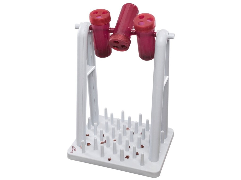 - 2 hry v 1: základna s kuželíky anebo 3 otočné prvky se 2 různými víčky (různá obtížnost)
