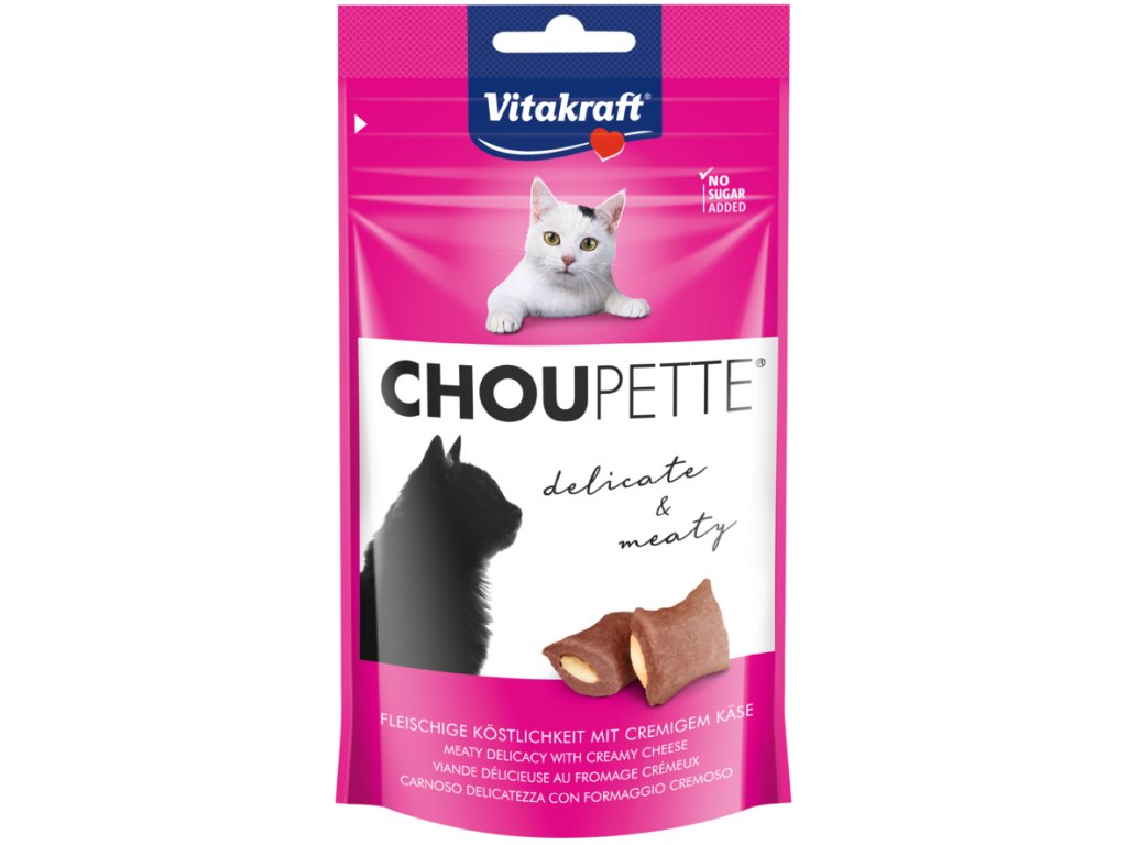 Tyto pamlsky pro kočky sestávají ze šťavnatého obalu, který ukrývá krémovou sýrovou náplň. Výroba je velmi šetrná: pamlsky jsou připravovány v troubě, takže si suroviny zachovají svou plnou chuť. Pamlsky Vitakraft Choupette® jsou vyráběny bez přidaného cukru s obsahem kvalitního taurinu. Pamlsky přichází v uzavíratelném obalu a lze je podávat jednotlivě. Díky tomu máte vždy po ruce malou odměnu pro Vašeho chlupáče.