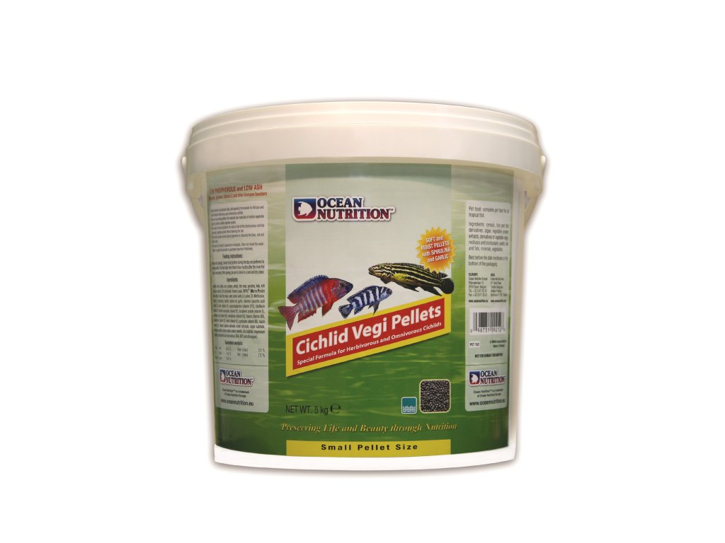 Velmi chutné krmivo skládající se z měkkých a vlhkých granulí, speciálně formulovaných pro africké a jihoamerické býložravé a všežravé cichlidy. Tyto potopitelné granule jsou určeny pro zlepšení zdravotního stavu, růstu a zbarvení. Tento unikátní recept kopíruje přirozenou potravu býložravých cichlid a zaručuje růst ryb bez navýšení tukových zásob. Krmivo obsahuje několik přírodních pigmentů pro zvýraznění modré, červené a žluté barvy. Obsahuje také řasy rodu Spirulina, česnek, vitamín C a další posilovače imunitního systému. Nízký obsah fosforu a popelovin. Krmivo je dodáváno s granulemi 2 velikostí: malé (to jsou tyto, vel. +/- 1,8 mm) a střední (+/- 3,8 mm). Provádějte krmení jednou až třikrát každý den. Nedávejte rybám více krmení, než budou schopny zkonzumovat během několika minut.