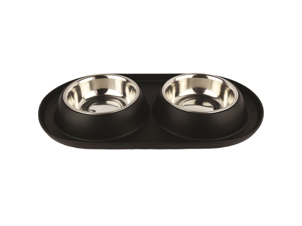 Dvojitá kovová miska Have a Pet je praktickým řešením pro každodenní krmení psů a koček. Je vyrobena z odolné, bezpečné a snadno čistitelné nerezové oceli. Každá miska je umístěna na černé plastové základně pokryté gumou, která pomáhá udržovat okolí krmiva čisté a zabraňuje jeho klouzání po podlaze. K dispozici ve dvou objemech - 2x220 ml a 2x480 ml.