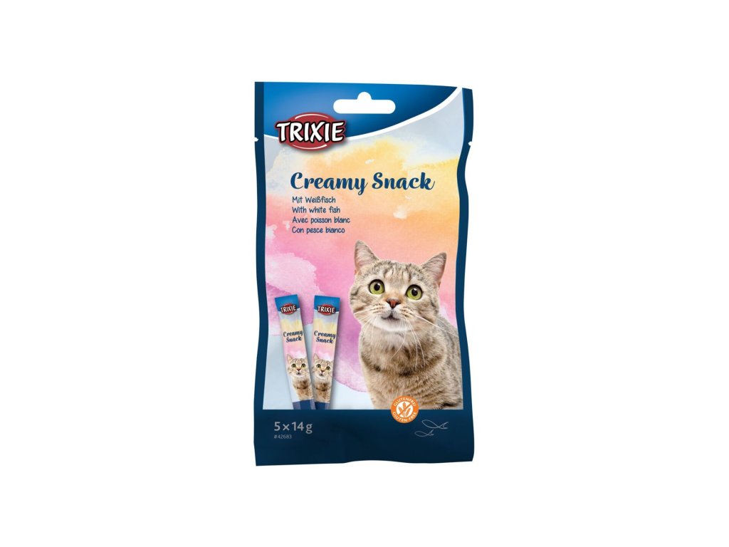Creamy, krémová pochoutka pro kočky, tuňák a bílá ryba, 5 x 14g