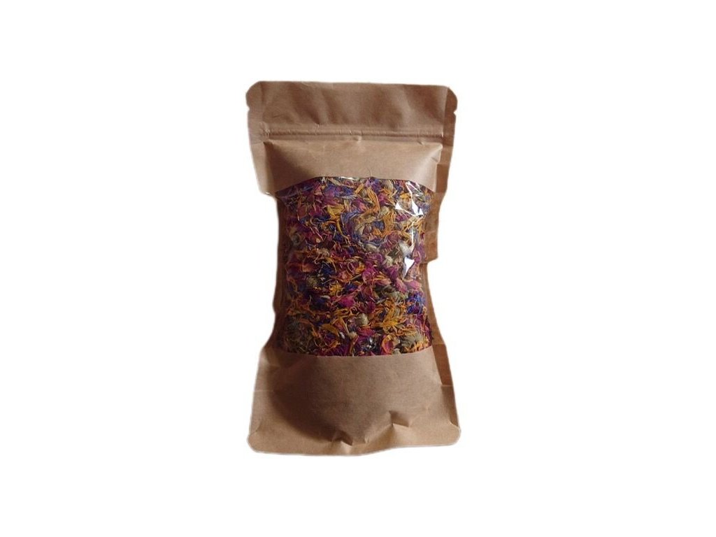 - složení: měsíček lékařský 25%, růže okvětní lístky 25%, levandule květ 25%,chrpa květ 25%