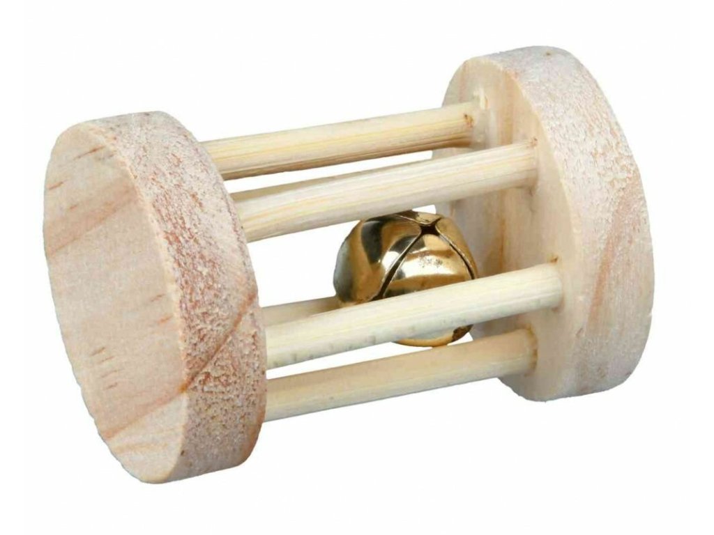 Dřevěný váleček s rolničkou pro křečky a myši ø 3.5 × 5 cm