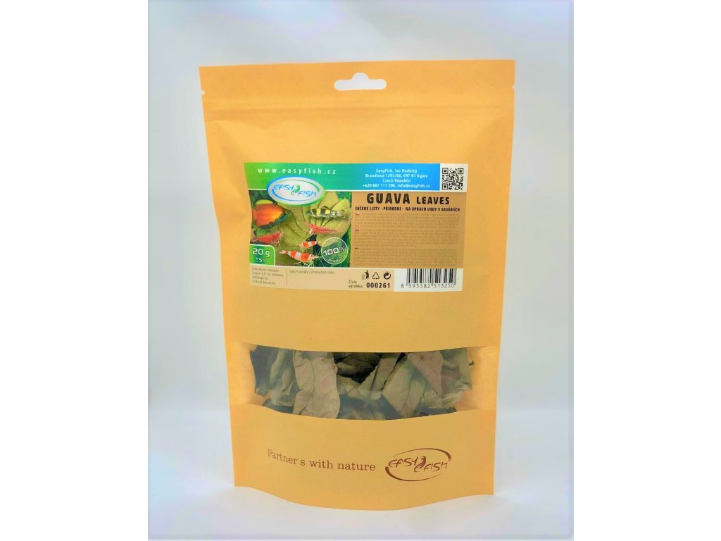 Listy guavy působí v akváriu podobně jako listy mořského mandlovníku. Rozkládají se velice pomalu za současného růstu biofilmu. Do vodního sloupce uvolňují třísloviny, které pomáhají v boji proti bakteriálním infekcím. O listech guavy je známo, že působí preventivně proti bakteriím rodu Vibrio, které jsou příčinou některých infekčních onemocnění krevetek a ryb. Listy lze aplikovat přímo do nádrže, kde postupně klesnou pod hladinu, nebo je lze pro změkčení a okamžitou dostupnost krevetkám krátce povařit. Listy guavy obsahují vitamíny B2, E a K, kyselinu listovou, vlákninu, vápník, železo, mangan, fosfor a draslík. Vysoký obsah vitamínu C.