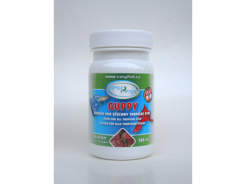 EasyFish Guppy je potravou pro normální každodenní krmení. Je specielně vyvinut tak, aby se co nejvíce blížil přirozené potravě. Všechny základní živiny a vitaminy v něm obsažené zvyšují odolnost proti nemocím. Pravidelním krmením ryb se dosahuje zlepšení jejich zdraví. Ryby krmte 2-3x denně v množství, které rybičky zkonzumují během 5 minut. Neskonzumované zbytky potravy po 1 hodině odstraňte.