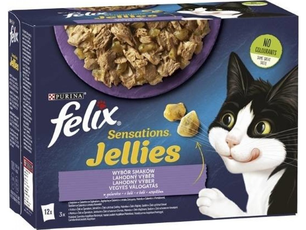 Multipack obsahuje: 3 x Felix Sensations Jellies s krůtou v želé se špenátem 85 g 3 x Felix Sensations Jellies s jehněčím v želé se zvěřinou 85 g 3 x Felix Sensations Jellies s makrelou v želé s rajčaty 85 g 3 x Felix Sensations Jellies se sleděm v želé s příchutí krevet 85 g