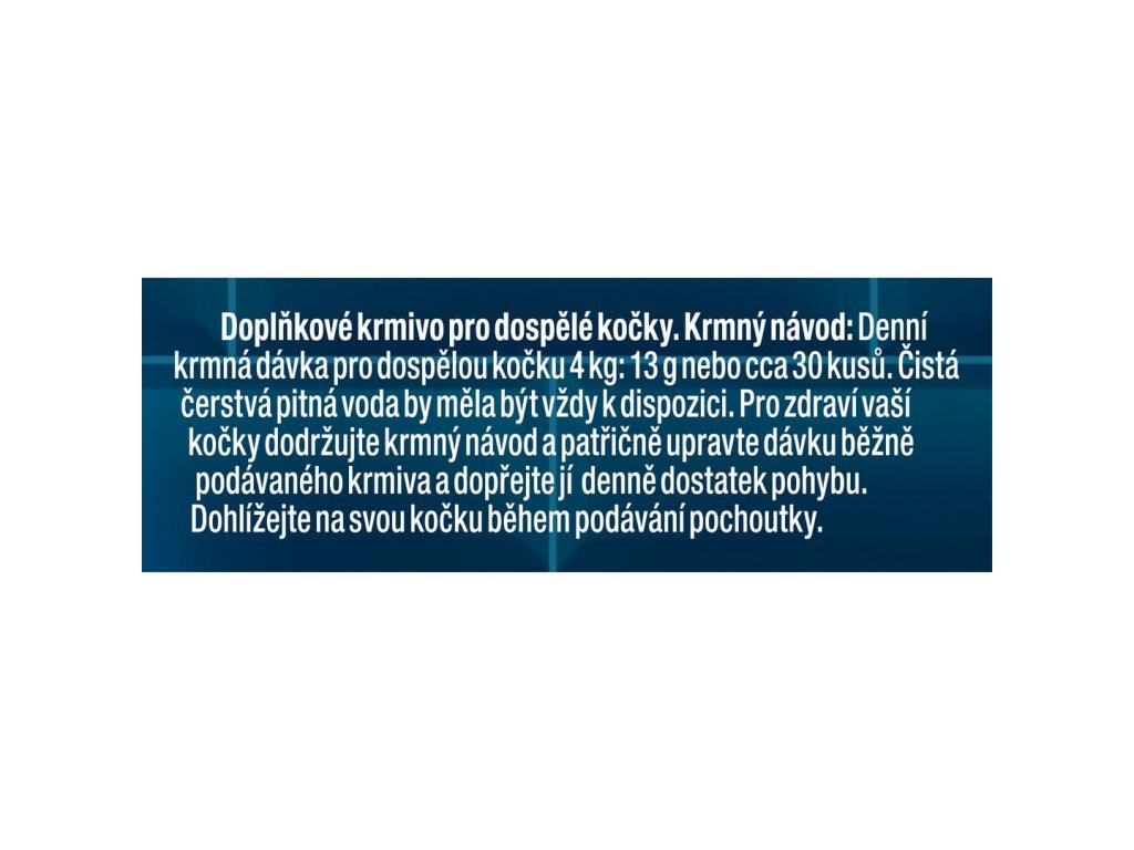 ELIX® Tasty Nuggets jsou lahodné pochoutky s vysokým obsahem bílkovin, se speciální hrubší texturou a bez barviv. Díky kombinaci dvou chutí dopřejí vaší kočce chutný okamžik a v průměru obsahují méně než 2 kcal na pamlsek. Překvapte svou kočku těmito lahodnými pochoutkami s vysokým obsahem bílkovin a s vitamíny, aby byla připravena na další zábavu.