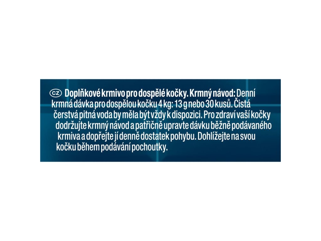 Denní krmná dávka pro dospělou kočku 4 kg: 13 g nebo 30 kusů.