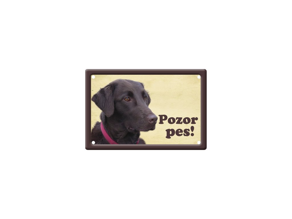 Plechová psí cedulka pro venkovní i vnitřní použití v rozměru 150x100mm, v rozích 4 díry pro uchycení, prolisovaný zdobný okraj tabulky, potištěný plech.