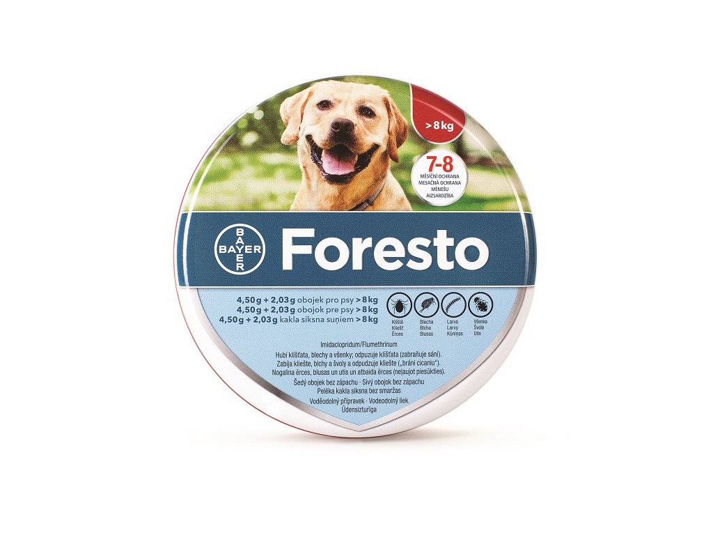 Pro psy o hmotnosti nad 8 kg použijte Foresto obojek o délce 70 cm.