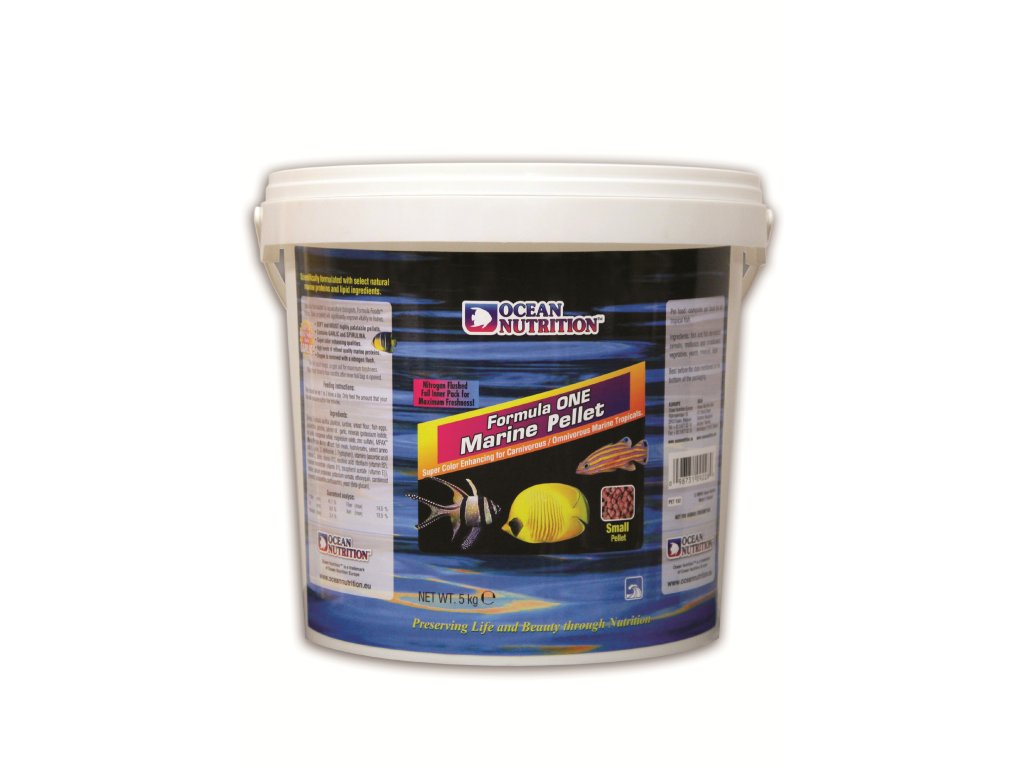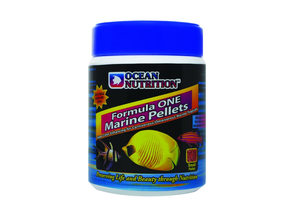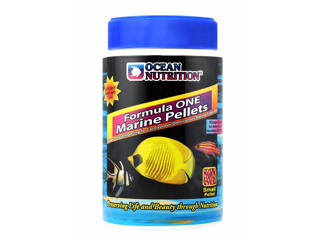 Dokonale měkké a vlhké granule zabalené do dusíkem propláchnutého fóliového sáčku zaručují maximální čerstvost. Hlavními charakteristikami jsou zvýšená chutnost a snadné trávení. Obsahuje česnek pro zvýšení odporu proti chorobám, kril pro zdůraznění barev, čerstvé mořské plody, plankton a řasy rodu Spirulina. Toto krmivo je určeno pro masožravé a všežravé ryby. Krmivo je dodáváno v malých granulích (+/- 1,2 mm), středních granulích (+/- 3,1 mm) a XL granulích (+/- 8mm). Používejte střední velikost pro krmení větších ryb s velikostí od 10 cm. Krmivo Formula One je červené a stejně jako naše mražené a vločkové produkty, je vyráběno s vyšším množstvím proteinů. Provádějte krmení jednou až třikrát každý den. Nedávejte rybám více krmení, než budou schopny zkonzumovat během několika minut. Fóliová kapsa zabraňuje přístupu kyslíku, což zaručuje maximální čerstvost. Jakmile bude vnitřní fóliový obal otevřen, dbejte na to, aby byla kapsa řádně uzavřena.