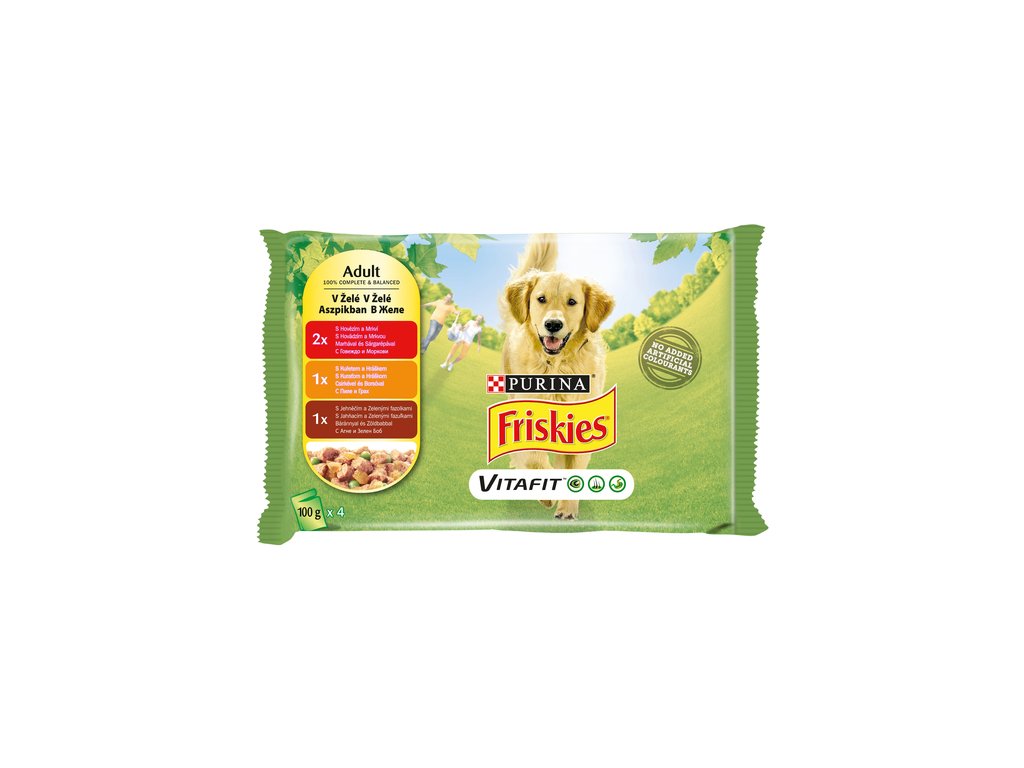 FRISKIES ADULT Dog multipack 4x100g hovězí/kuře/jehněčí v želé