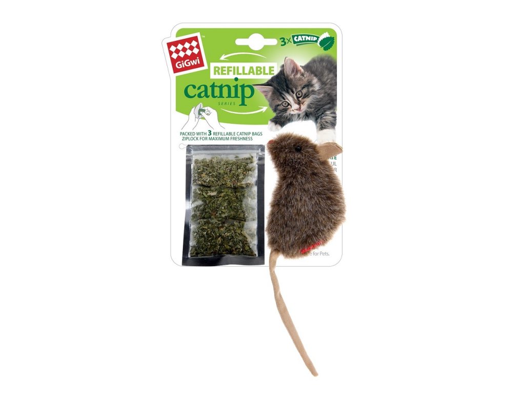 GiGwi Catnip Myška se 3 sáčky výměn. náplní