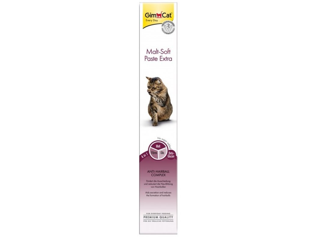Pasta pro kočky s vylepšenou recepturou obsahuje kombinaci různých balastních látek (vlákniny), které podporují trávení a přirozrné vylučování spolykaných chlupů a dalších nestravitelných složek stravy. Vaše kočka pak nebude mít problémy s dávením smotků srsti. Doporučené dávkování: Denně podejte kočce 4 - 5 cm pasty přímo z tuby nebo na krmení. V případě potřeby můžete množství zdvojnásobit. Podávejte při pokojové teplotě.