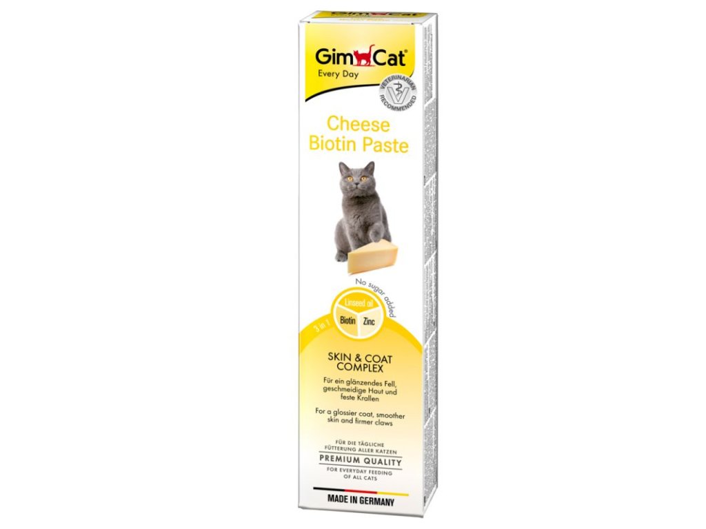 Biotinu se ne náhodou říká vitamín krásy. S pastou od Gimcat pomáhá tělu zachovávat sílu a vitalitu. Sýrová pasta bude oblíbeným pamlskem vaší kočky.