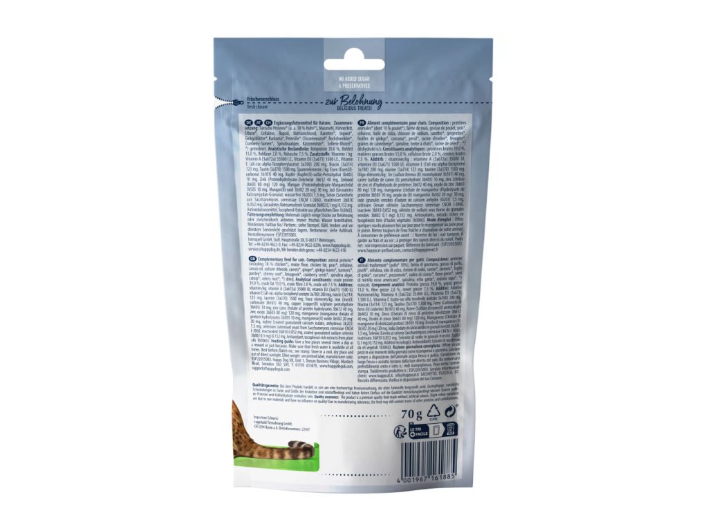 Crunchy Snack Land-Geflügel se šťavnatým kuřecím masem a křehkou mrkví rozmazlí vaši kočičku a zároveň pokryje jejích pět nejdůležitějších potřeb. Protože s novým složením účinných látek - All in One Concept ® - je o vaši kočku optimálně postaráno. Happy Cat Crunchy Snacks navíc neobsahují žádný přidaný cukr ani konzervační látky a jsou neodolatelně chutné!