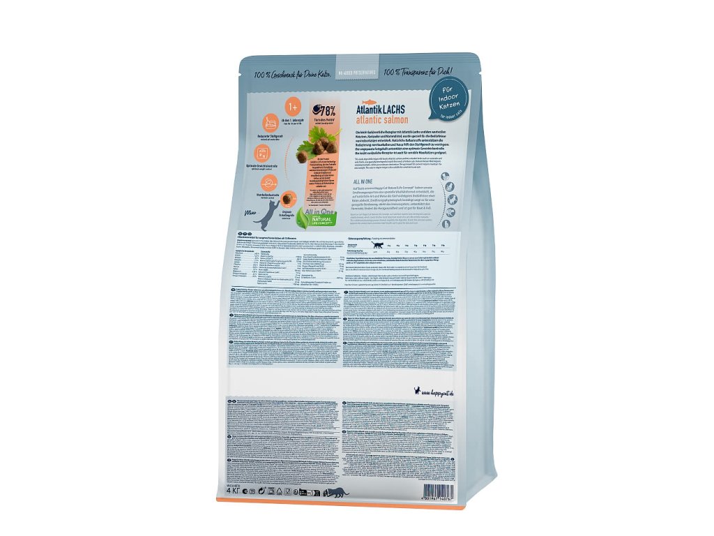 Krmivo Happy Cat Indoor Atlantik-Lachs bylo vyvinuto speciálně pro bytové kočky. Přírodní vláknina podporuje snižovaní tvorby chlupových smotků a juka pomáhá snižovat zápach trusu.