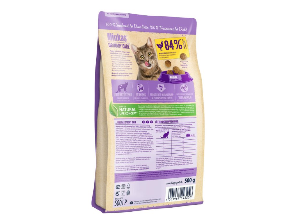 Kompletní Premium krmivo pro dospělé kočky. Podpora močových cest. 84 % živočišných proteinů.